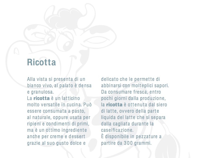 (qui di seguito, per esempio, mozzarella e ricotta):